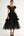 Black A-Line Flatter Sleeves Ruffles Tulle Tea Length Formal Dress