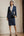 Navy 2 Piece Peak Lapel Pencil Midi Business Suits with Belt