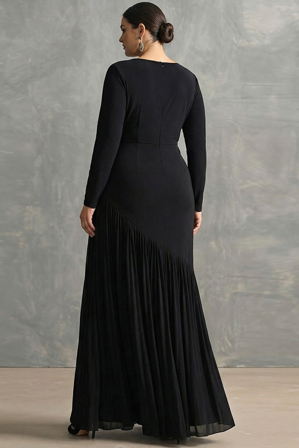Black Crepe Chiffon Mermaid Pleated Plus Size Formal Dress with Ruffles
