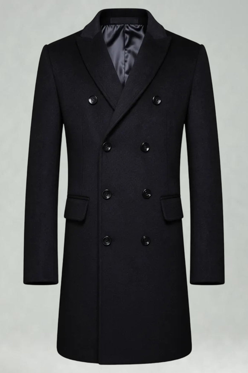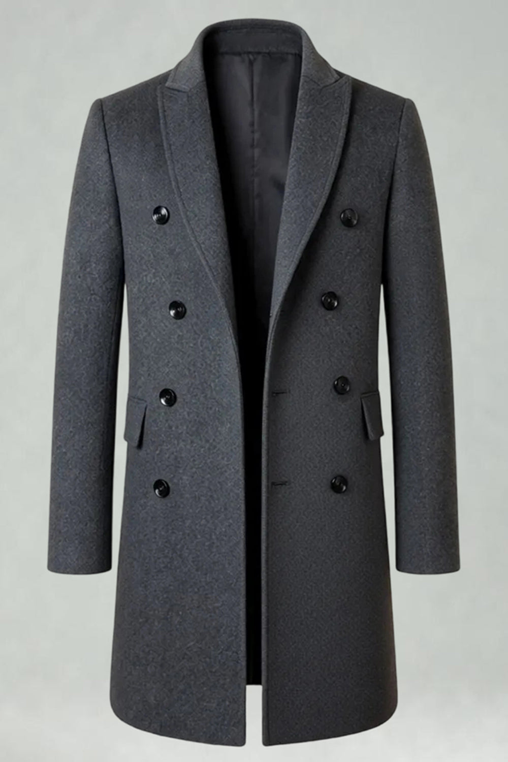 Peak Lapel Double Breasted Long Men's Grey Winter Coat