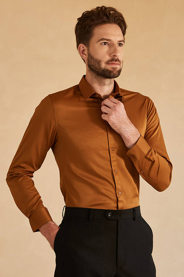 Long Sleeves Camel Solid Suit Shirt