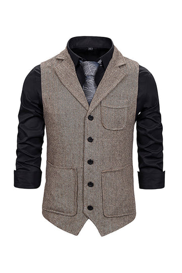 Brown Tweed Single Breasted Notched Lapel Men's Suit Vest