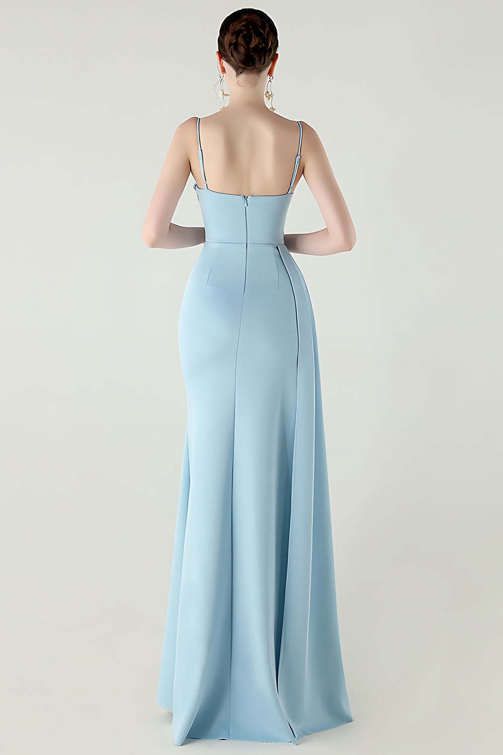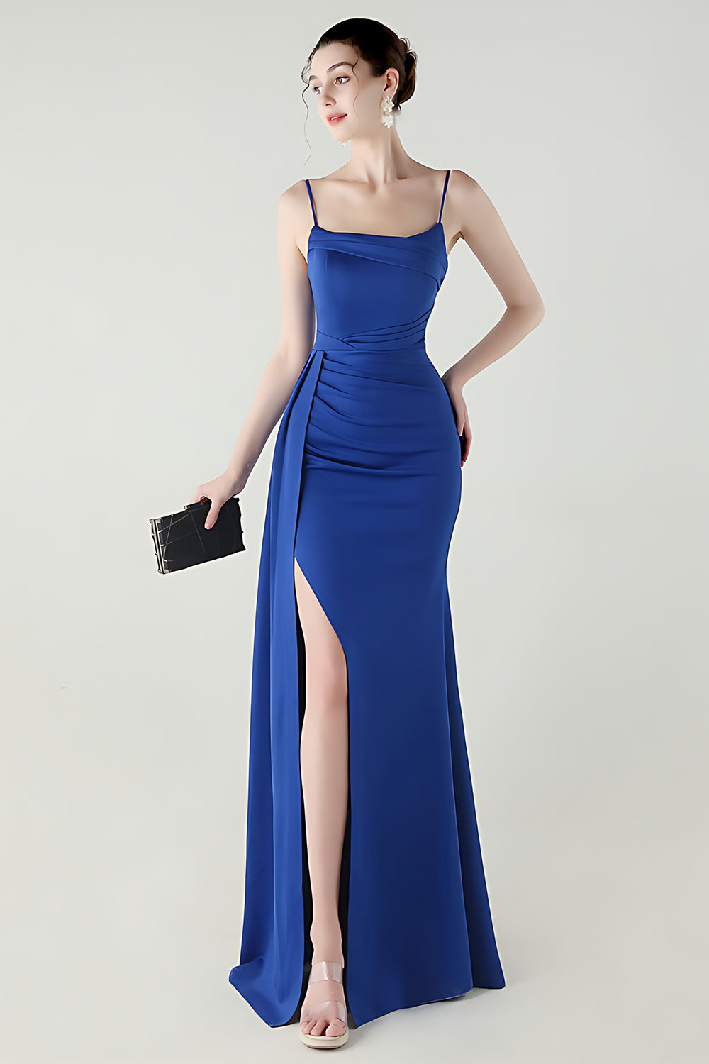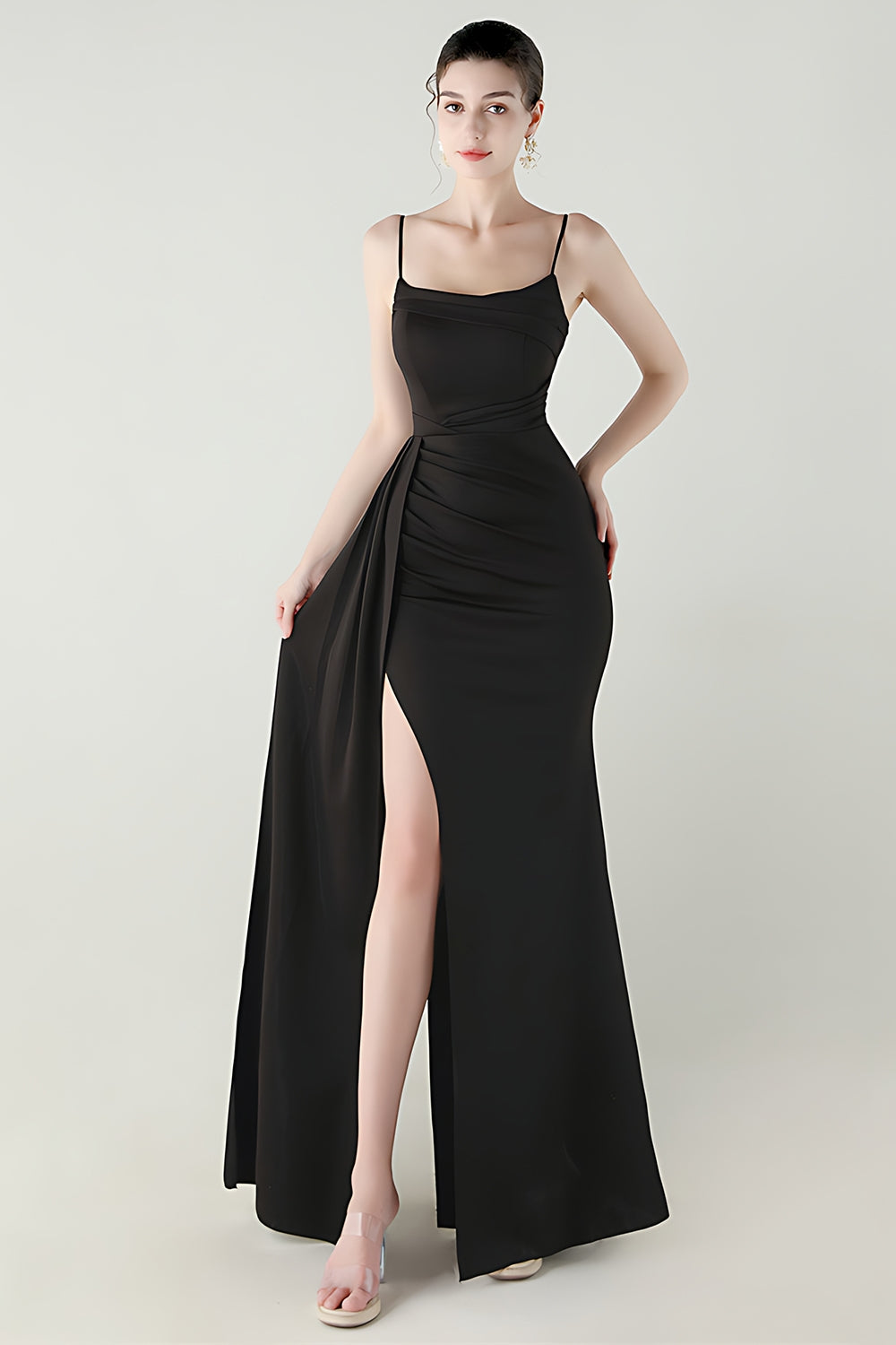 Black Spaghetti Straps Mermaid Long Ball Dress with Slit