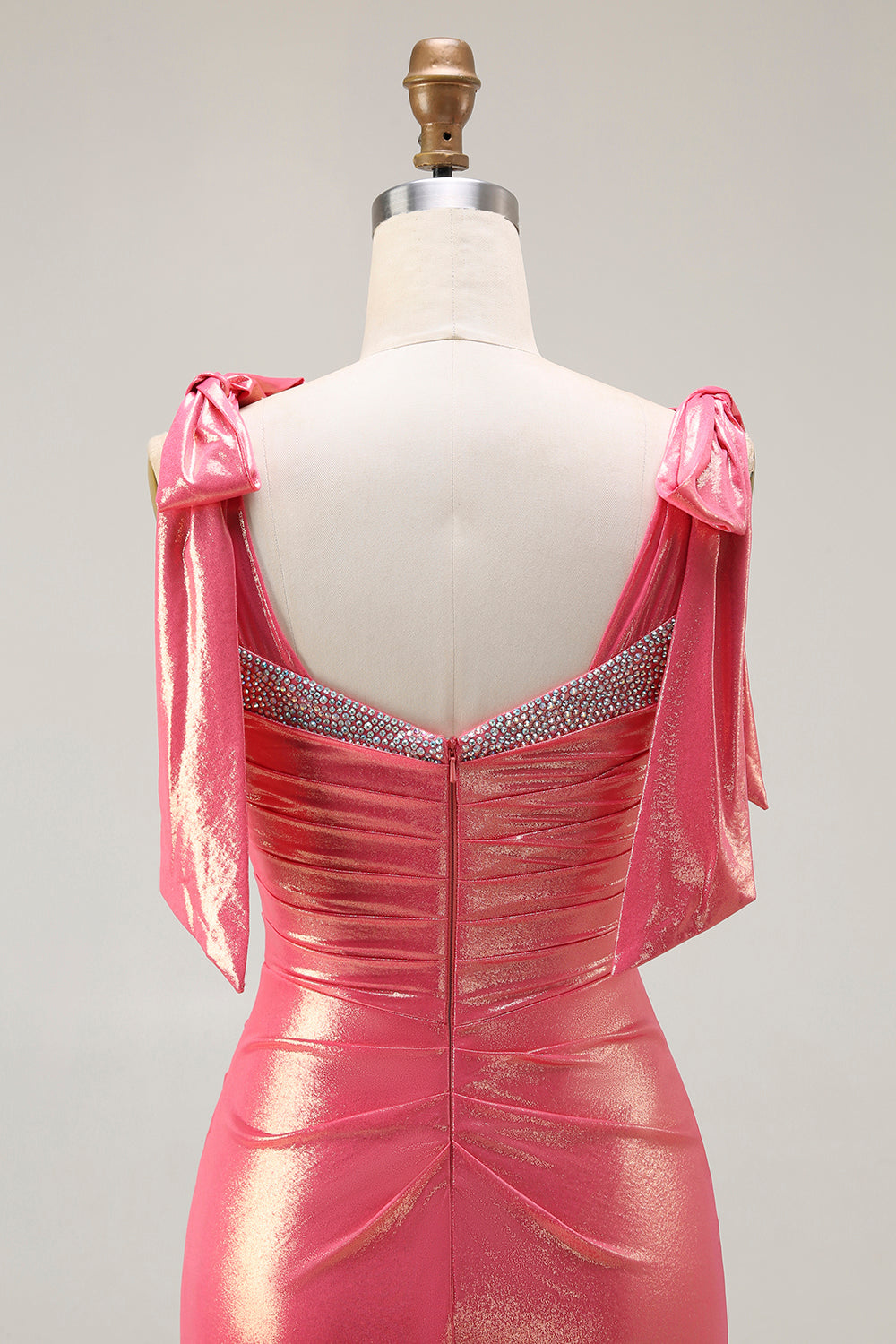 Metallic Coral Beaded Mermaid Ruched Long Ball Dress with Slit