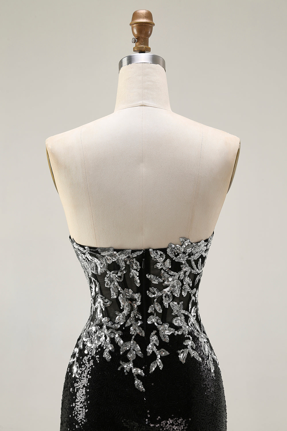 Sparkly Black Silver Mermaid Strapless Sequin Corset Strapless Long Ball Dress
