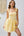 Yellow Flower Printed A-Line V-neck Short Sleeves Long Prom Dress
