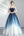 White Blue Flower A-Line Strapless Tiered Long Ball Dress with Bows
