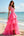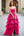 Hot Pink Beaded V Neck A Line Tiered Long Prom Dress