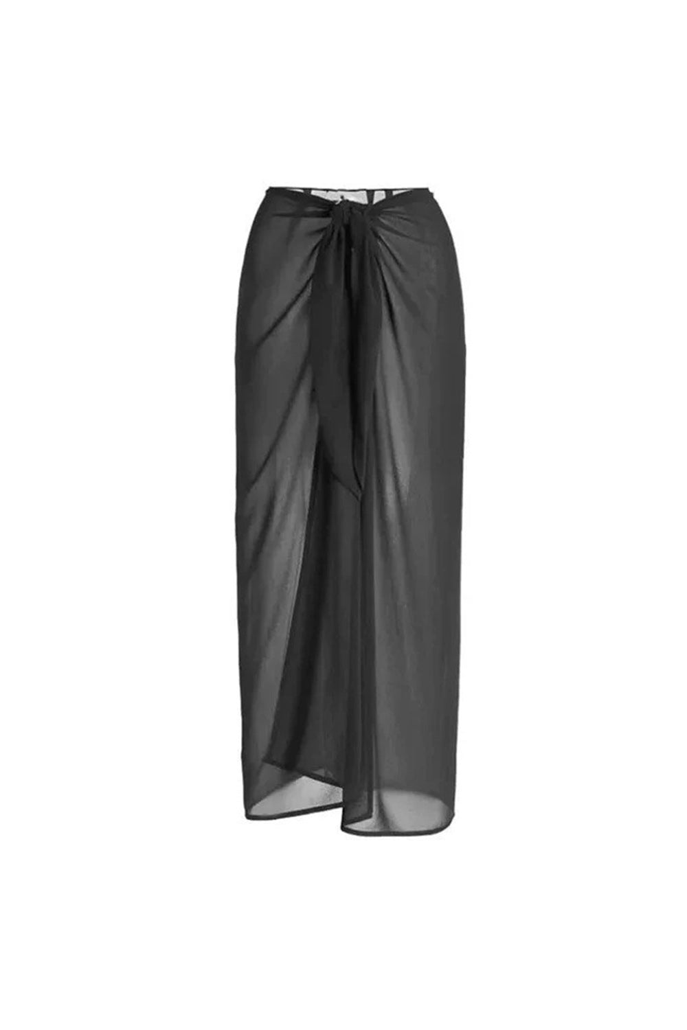 Black Stripe High Waist One Piece Swimsuit with Beach Skirt