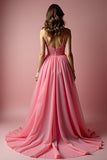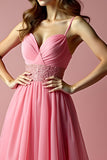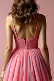 Sparkly Pink A Line Spaghetti Straps Sequined Long Prom Dress