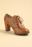 A pair of amazingly adorable shoes, darlings! A statement-making bootie, these chunky heels are crafted in soft black leather, featuring a 3 inch heel and dramatic lace up vamp. Oxford detail and a classic lace up front keep you coming back to these retro shoes, complete with a cushion insole for an alluring style, making for a unique touch you can flaunt all day!