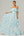 A Line Square Neck Light Blue Tiered Floral Long Ball Dress with Ruffles
