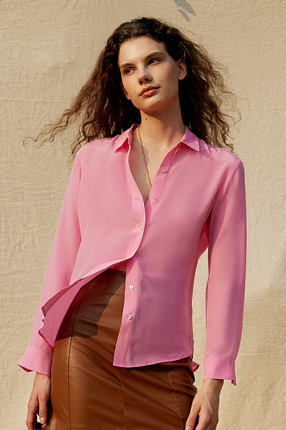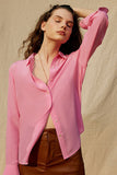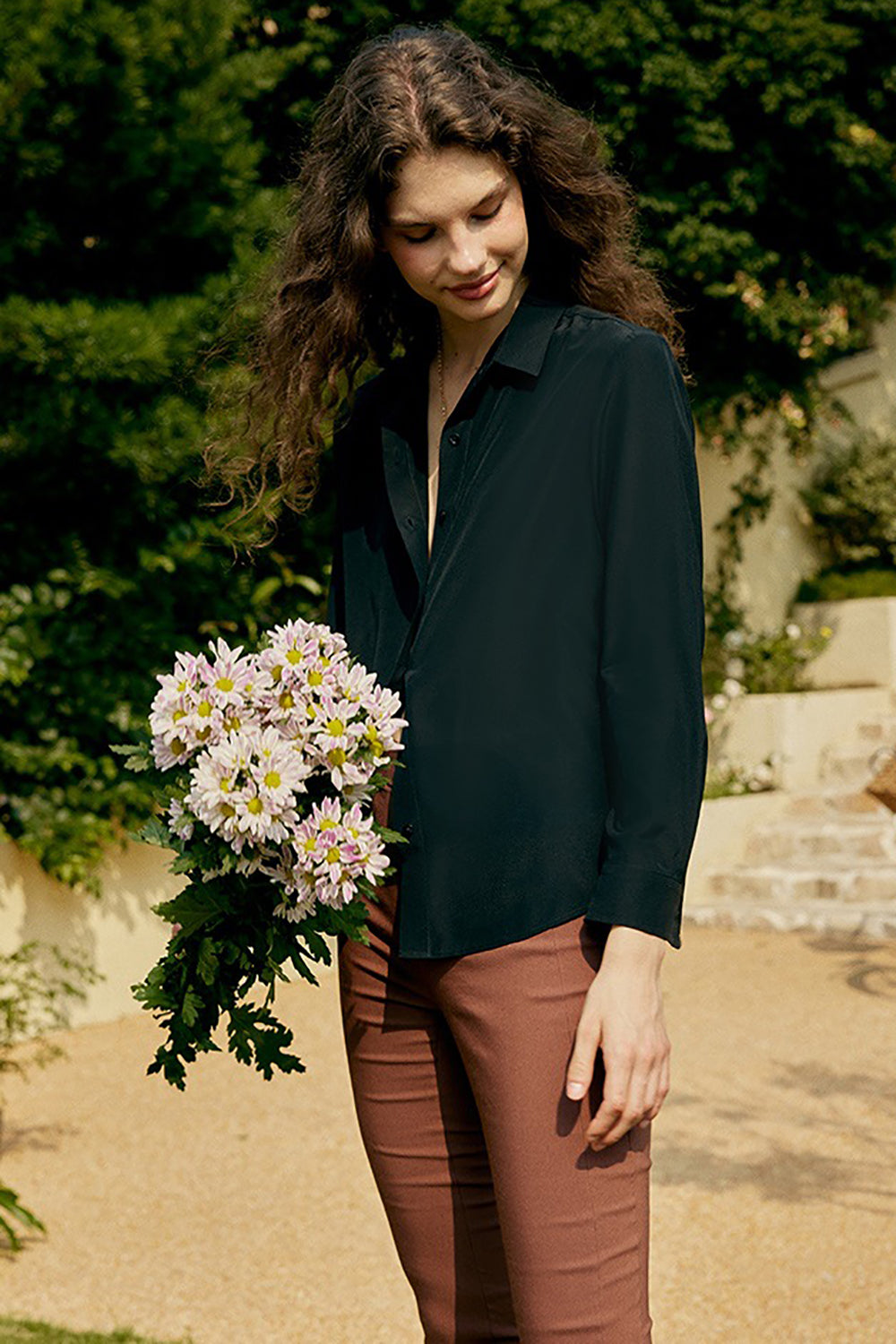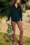 Black Long Sleeves Button Down Women Silk Blouse