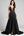 Spaghetti Straps A Line Satin Black Tie Dress with Slit