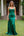 Dark Green A Line Lace V Neck Satin Long Prom Dress