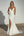 Ivory Sheath Satin Round Neck Long Sleeve Wedding Dress with Ribbon