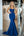 Blue Ruched Sweetheart Prom Dress with Slit