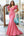Sparkly Pink Princess V Neck Satin Long Prom Dress with Appliques
