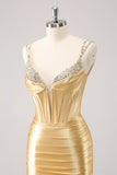 Golden Spaghetti Straps Bodycon Homecoming Dress with Sequins