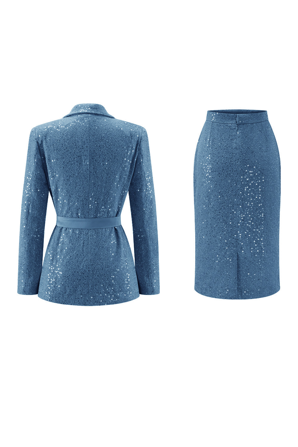 Pink Sequin 2 Pieces Notched lapel Midi Prom Suits