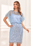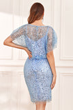 Sheath Jewel Neck Grey Blue Sequins Wedding Guest Dress