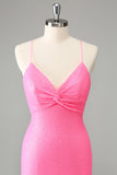Stylish Glitter Pink Sequins Tight Halter Homecoming Dress with Lace Up Back