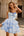 White Blue Floral Corset A-line Strapless Tiered Short Ball Dress