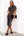 Black Mermaid V-Neck Asymmetrical Midi Cocktail Dress with Sleeves