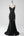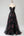 Black A Line Spaghetti Straps Printed Long Ball Dress with Slit