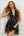 Little Black Sequins Tight Cocktail Dress with Feathers
