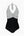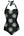 Vintage Printed Black One Piece Swimwear Set with Beach Skirt