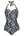 Blue and White Porcelain Printing High Waist One Piece Swimwear