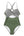 Two Piece Green Printed Bikini Set with Beach Skirt