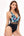 Blue Spaghetti Straps One Piece Print Floral High Waist Swimsuit
