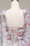 A-Line Spaghetti Straps Flower Printed Long Ball Dress