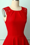Look like a doll with this beautiful red homecoming dress! With a lace illusion neckline and a scrunched neck that ends up with a cinched waist, this lovely dress enhances and gives off the illusion of a bigger bust to create a curvy, hourglass like silhouette and the a-line, flowing, circle skirt end up just above the knees to showcase your beautiful legs and to allow you as much movement as possible so you can dance for the entire night!