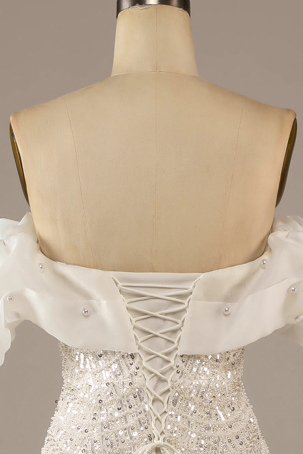 Sparkly Ivory Mermaid Sequined Floor-Length Wedding Dress
