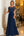 A Line Printed Blue Flower Long Wedding Guest Dress with Slit