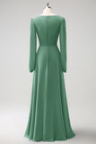 A Line Fuchsia V-Nack Chiffon Bridesmaid Dress with Long Sleeves