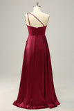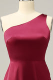 Burgundy Plus Size One Shoulder Long Bridesmaid Dress