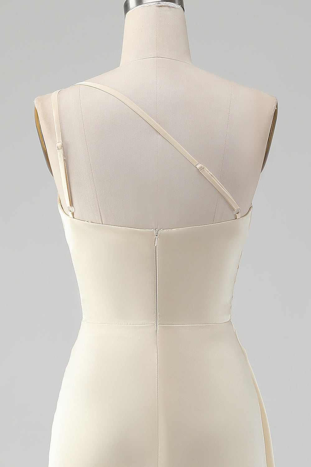 Champagne One Shoulder Sheath Long Bridesmaid Dress With Slit