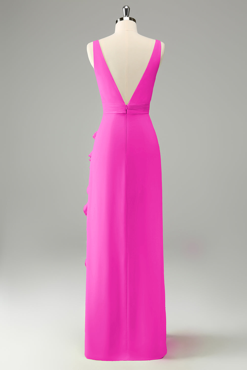 Lime Deep V Neck Ruffles Wedding Guest Dress with Slit
