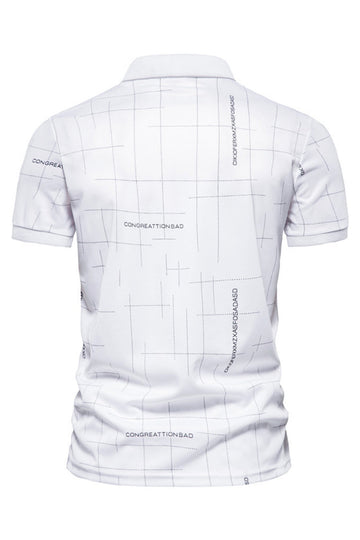 White Pattern Print Short Sleeves Men's Polo Shirt