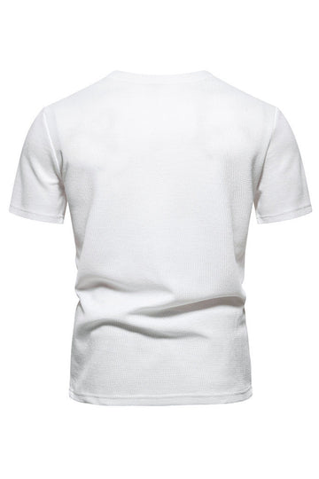 White Short Sleeves Waffle Men's Casual Polo Shirt