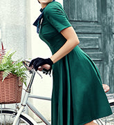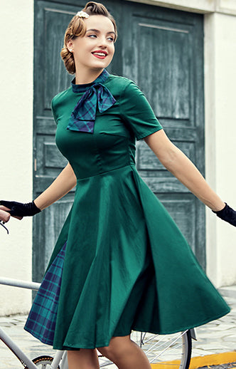 This green plaid swing dress is from our 1950S Dress Collection. It is one of the best-selling dresses under the collection. Featuring a high-neck fitted bodice and a flaring skirt, this dress has a strong flair of 1950s vintage style. Perfect for vintage-style lovers to use as daily-wear or for special theme photo-shooting.