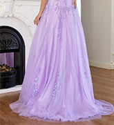 This A-line dress is from Prom Dress Collection. It is a 2022 new style and has been one of the best-selling dresses this year. This dress features an A-Line silhouette, fitted bodice and a full skirt. The embroideries winding through the dress give an elegant and delicate look. This dress is flattering and suitable for many occasions.