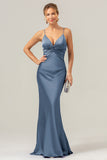Mermaid Spaghetti Straps Hollow Out Twist Front Purple Bridesmaid Dress
